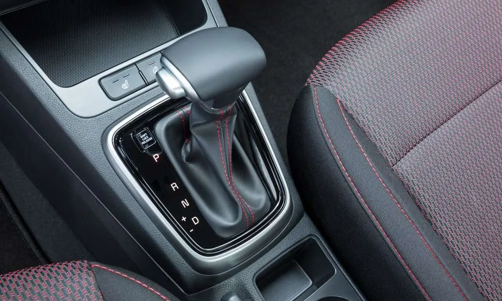 • Селектор трансмиссии и рулевое колесо с красной прострочкой